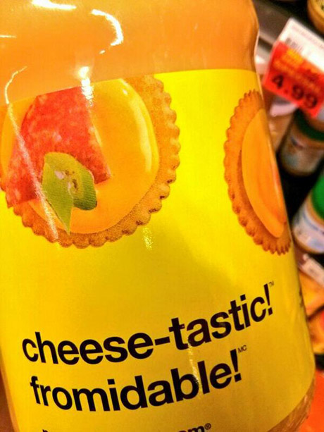 Thanks to the wonders of Canada’s bilingual labelling laws, and Loblaw’s stupendous “No Name/Sans Nom” brand packaging, we now have a fantastic new adjective to describe Johnny Hallyday’s greatest hits. And, of course, processed cheese spread. Fromidable!