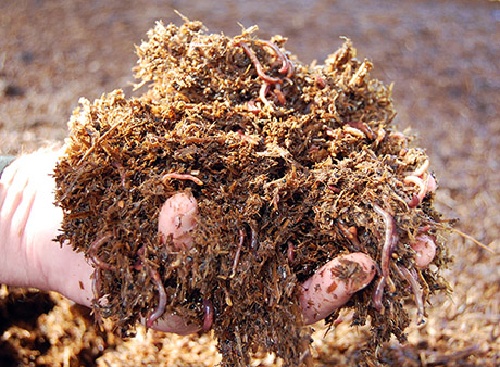 Chambers credits his pilot’s appreciation for standard operating procedures and checklists for many of the technical improvements he’s introduced over the past twenty years. For example, in order to pre-compost the manure source and kill any pathogens or weed seeds before feeding it to the worms, Chambers arrived at his own design for a three-bin forced-air system, complete with a rigorously optimized schedule of turning, blowing, and releasing gases. “If I’ve done anything with worms,” he says, “it’s that.”